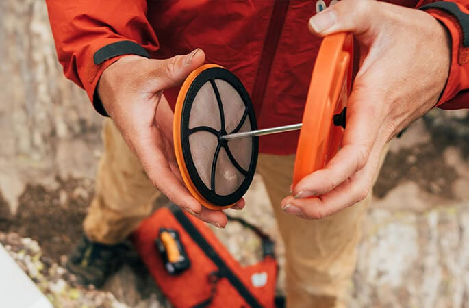 The stem detaches from the filter to easily pack into your system when not in use.