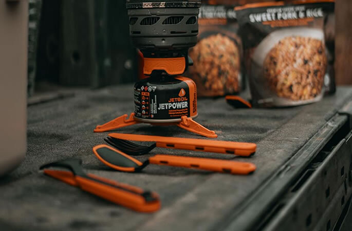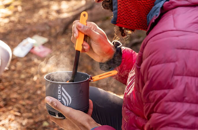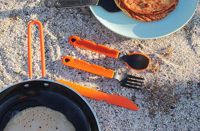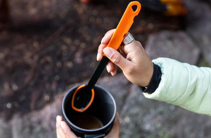 The perfect outdoor utensil set. Forget about the mess and hassle of cleaning on the trail. The Jetboil TrailWare is designed to easily extend and reach inside a Jetboil cookpot or dehydrated meal package. The unique silicone edge spoon will easily scrape every morsel while minimizing scratches to the pot surface. All three utensils snap together for easy storage and transport.